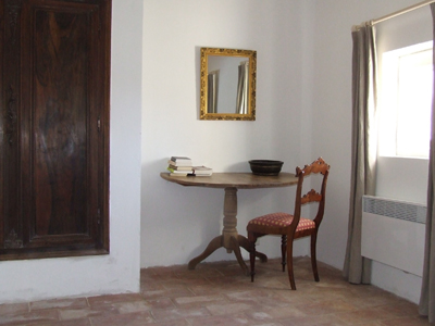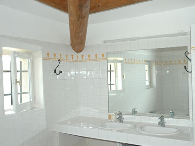 Benedenverdieping Op de benedenverdieping zijn verder 2 badkamers. De grote (binnen) badkamer heeft ligbad, douche, wc en een dubbele wastafel. De buitenbadkamer is alleen van buiten bereikbaar (de naam zegt het al) en heeft douche, wastafel en wc. Hier staat ook de wasmachine. Exterieur Om het huis ligt een groot terras waar je in “ochtendhoek” een geweldig uitzicht op de Luberon hebt en waar verder gegeten kan worden aan een grote eettafel. Verder veel stoelen, luie banken e.d. Het grote terrein is geheel omheind en honden (uiteraard welkom maar liever niet op de bedden) en kinderen kunnen er niet, althans niet makkelijk af. |
