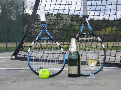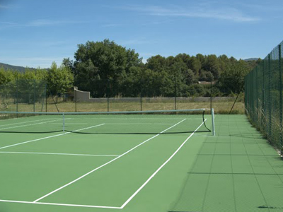 De tennisbaan (beton) ligt op 50 m. van het huis. Vlakbij huis staat een vaste pingpong tafel. In de schaduw van de platanen kan jeu de boules gespeeld worden enz. enz.